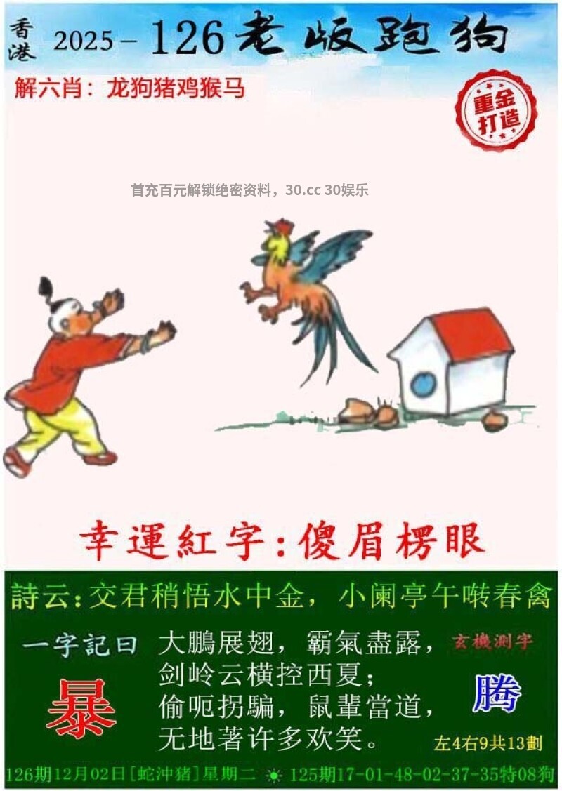 125期:六肖【鸡龙狗猴鼠羊】开:狗08中